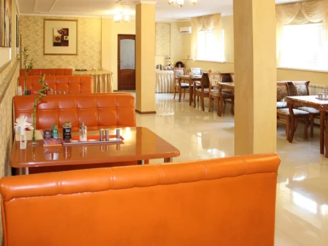 Здесь созданы все условия для комфортного проживания — каждый наш номер с хорошей звукоизоляцией располагает всеми удобствами для комфортного времяпрепровождения. В распоряжении гостей телевизор с плоским экраном и спутниковыми каналами, письменный стол, удобная кровать, шкаф для одежды, холодильник, фен, утюг, чайник, отопление, мини-бар. Ванная комната оснащена всеми необходимыми туалетно-косметическими принадлежностями, халатом и одноразовыми тапочками. К услугам гостей круглосуточная стойка регистрации и бесплатный Wi-Fi на территории поможет всегда оставаться на связи. Наш отель идеально подходит для семейного отдыха с детьми – комплекс находится на закрытой охраняемой территории, где можно гулять, играть и проводить время так, как хочется. Наш отель окружен зелеными лужайками, деревьями, клумбами и уголками для отдыха. В гостинице есть ресторан с вкусной домашней кухней. И вы наверняка захотите отдохнуть у бассейна — он тут тоже есть. Причём открытый, с подогревом. Гости могут выбирать между полным пансионом и полупансионом. Для гостей, путешествующих на автомобиле, предусмотрена бесплатная, полностью охраняемая парковка.